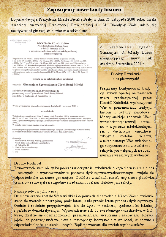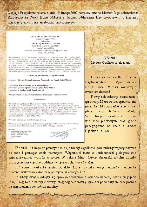- Liceum rozpoczęło swoją działalność od 1.09. 2002 r..